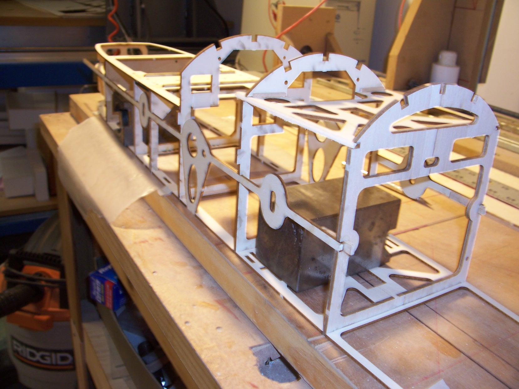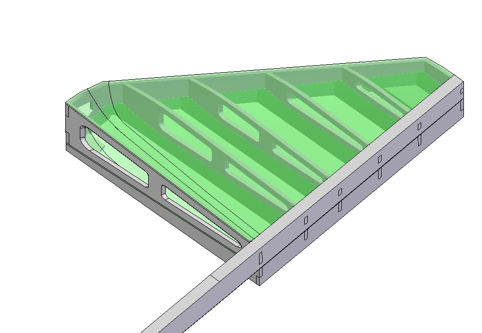 wings, stabs, and rear fuse deck are cnc cut foam cores. The kit includes laser cut foam cutting